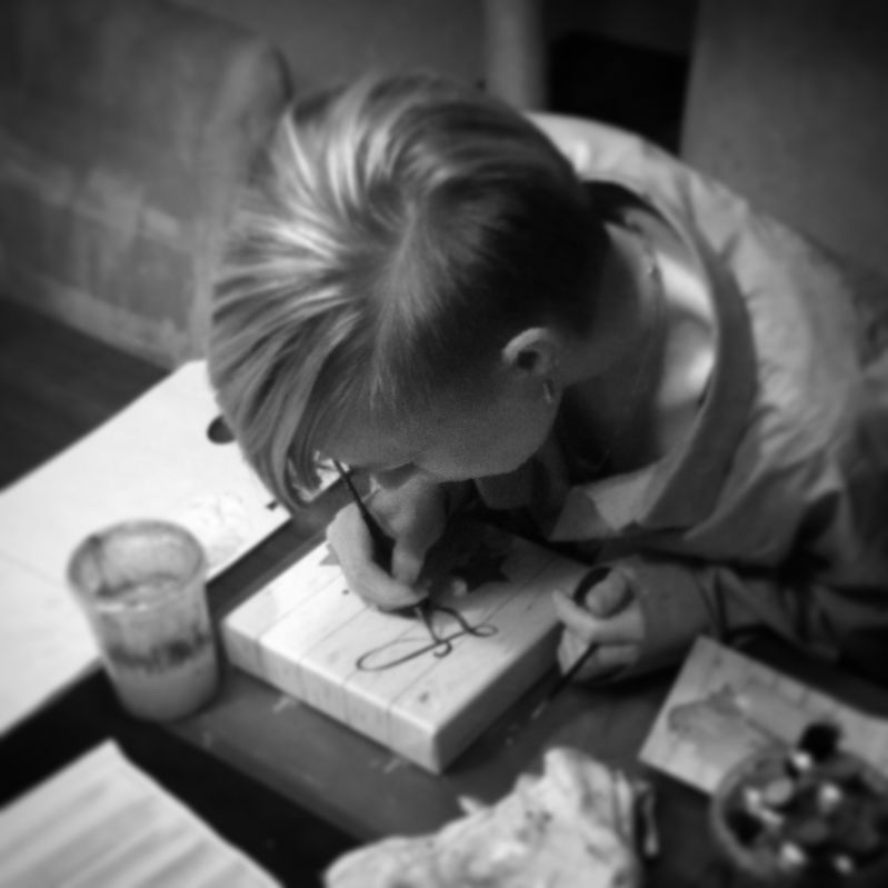 Ook maak ik naar het ontwerp van een trouw- of geboortekaartje een uniek kunstwerk. Deze maak ik op bestelling en worden op een canvasdoek geschilderd met de afmetingen van 20x20cm. De kosten hiervan zijn €45,00 per stuk.